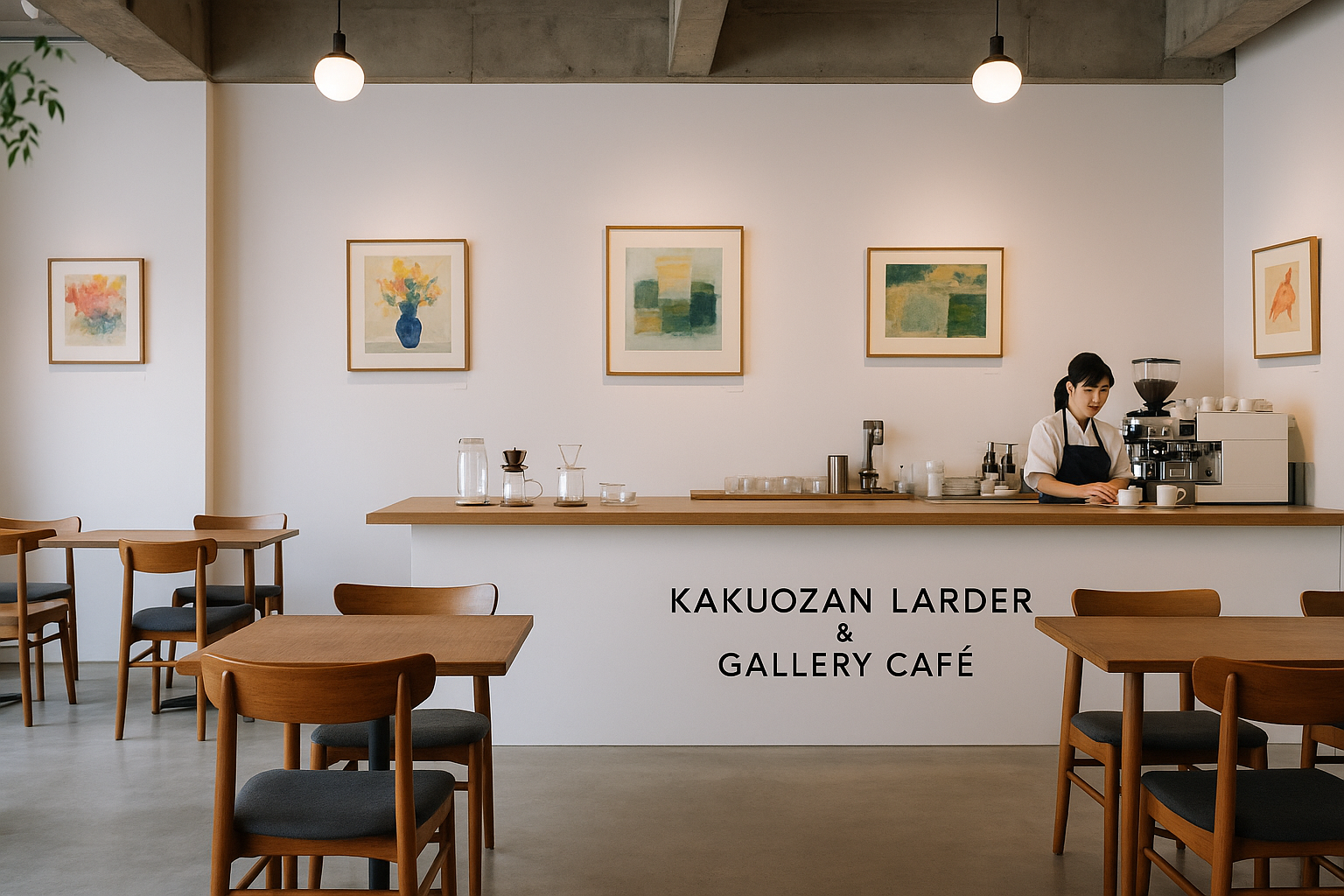 카쿠오잔 지역의 미니멀리즘 미술관 느낌의 카페