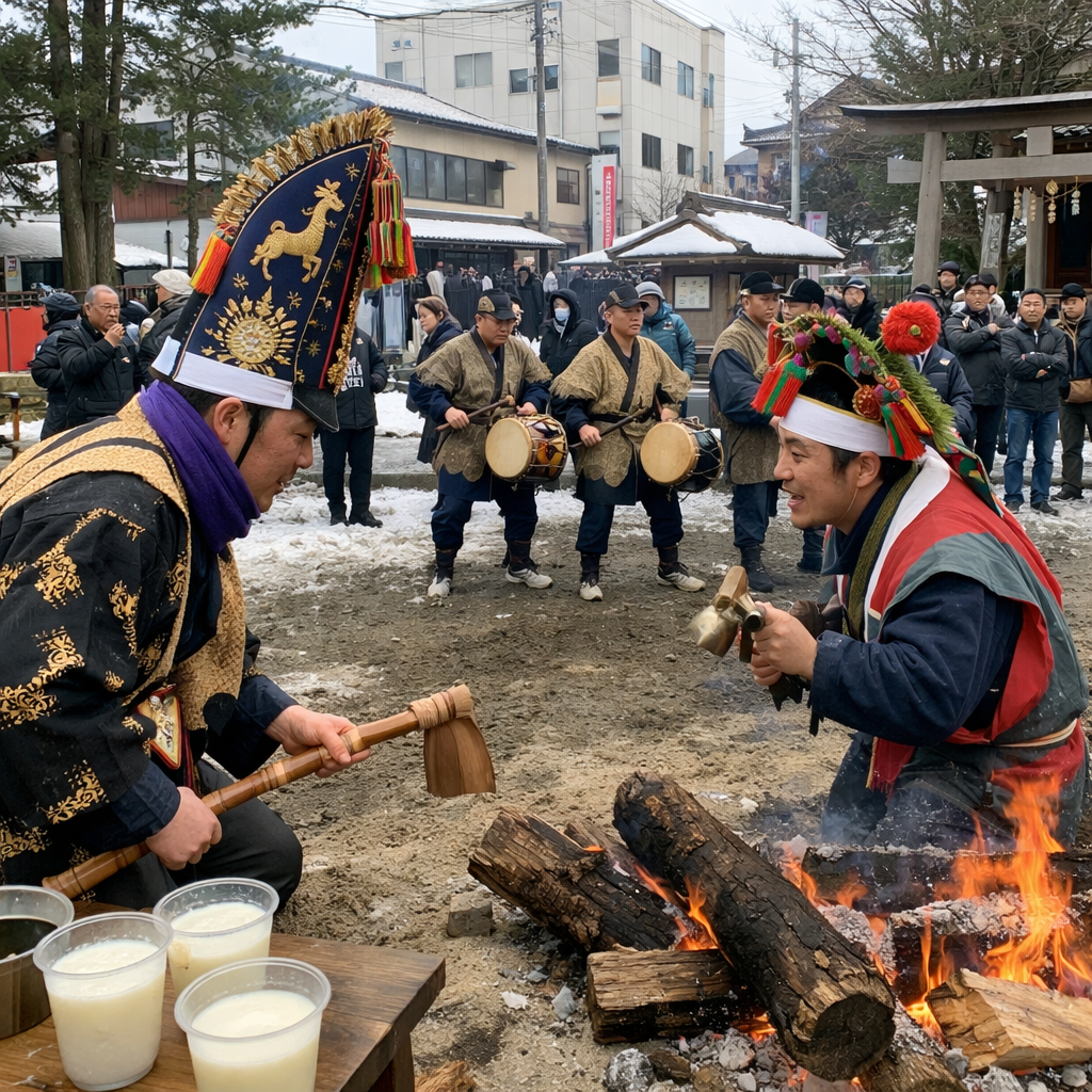 현장에서는 따뜻한 **아마자케(발효 감주)**와 지역 향토 음식인 하치노헤 센베이 수프도 맛볼 수 있어 여행의 즐거움을 더합니다. 전통 음식을 함께 즐기며 옛 일본의 생활문화를 상상해 보는 것도 이 축제를 경험하는 또 하나의 방법입니다.