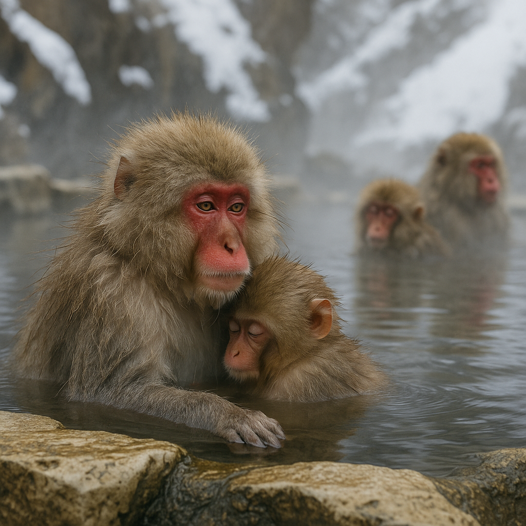 야생 원숭이들이 온천에 들어가는 진귀한 장면
