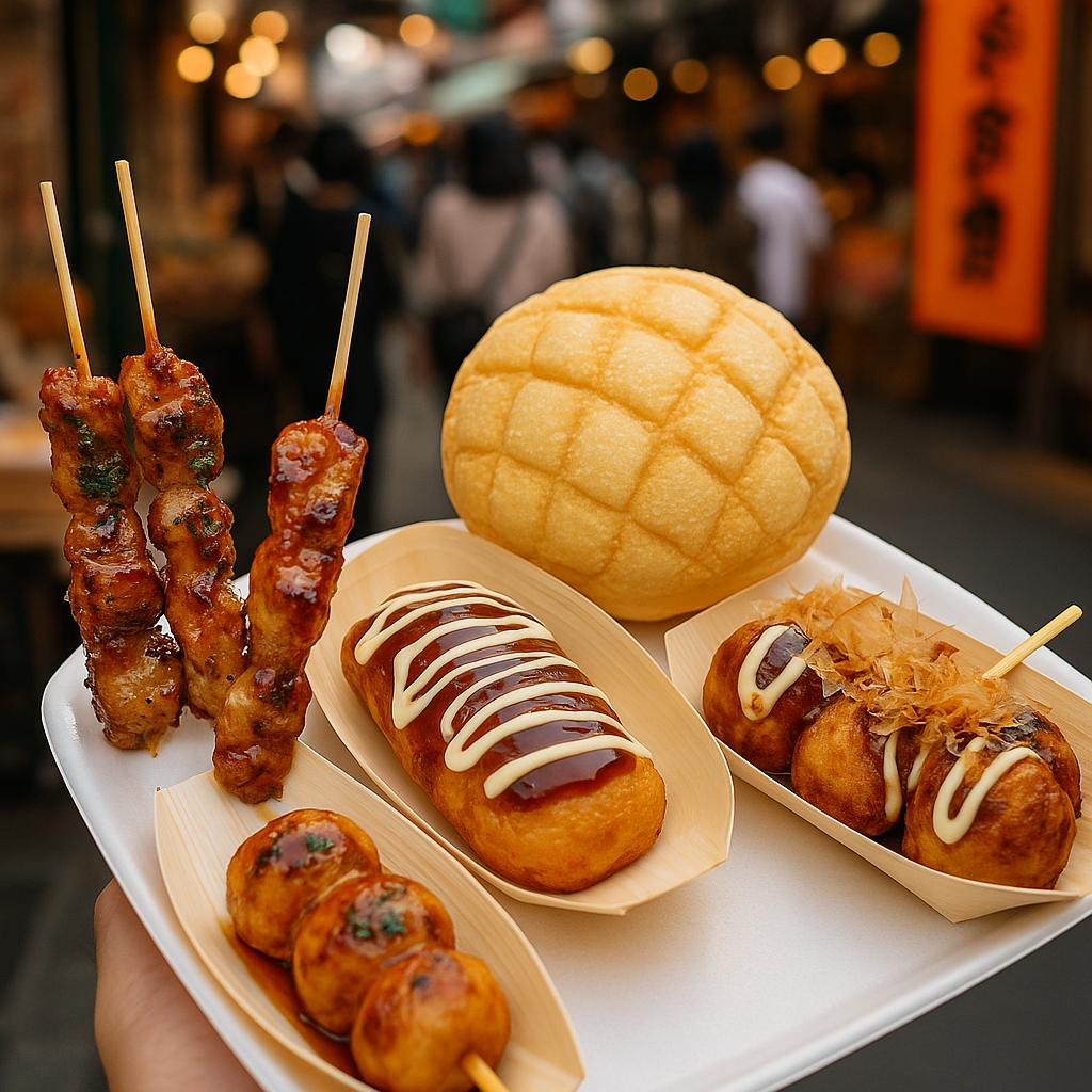 도쿄 스트리트 푸드 여행 가이드! 아사쿠사·아메요코 시장에서 맛보는 타코야키, 멜론빵, 야키토리 등 일본 현지 길거리 음식과 추천 코스를 정리했습니다.